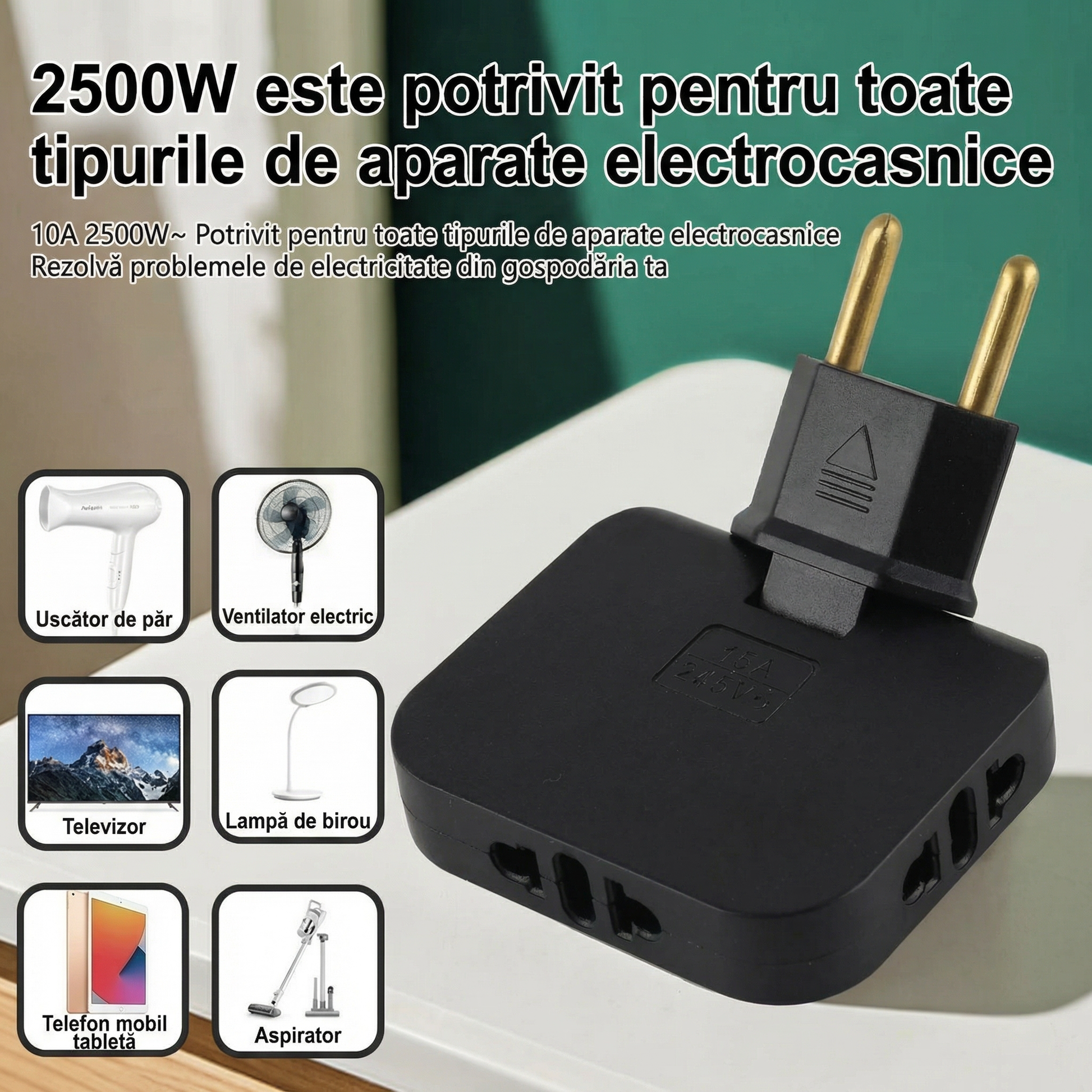 - ✅ Oferă 3 prize suplimentare dintr-o singură priză, triplând capacitatea de alimentare.