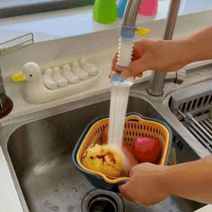 Îl folosesc zilnic la legume și fructe. rotirea e super utilă, nu mai ridic ligheanul prin chiuvetă 😅