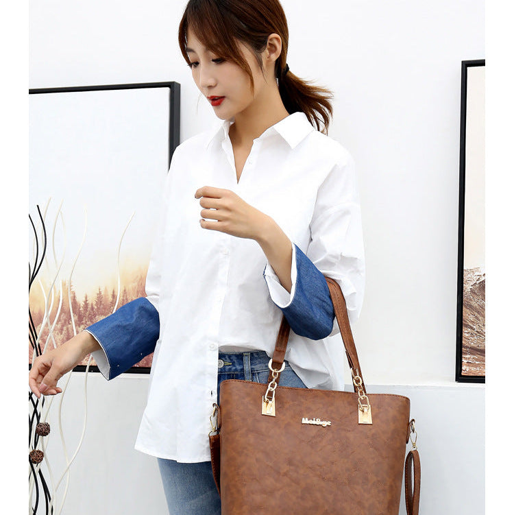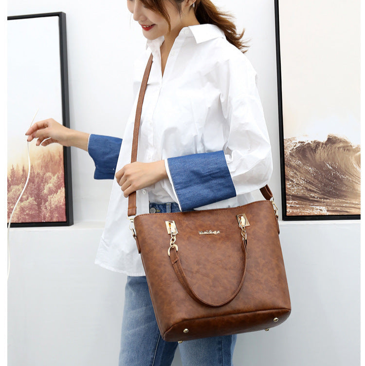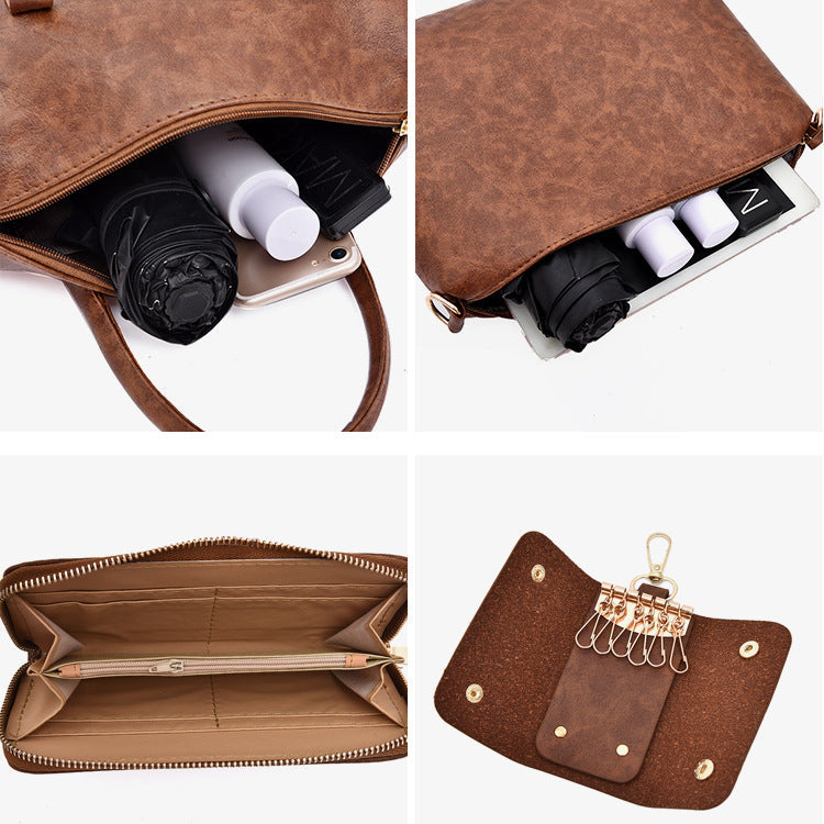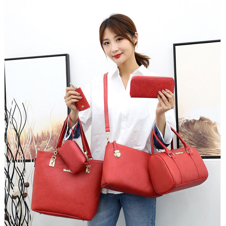 - ✅ Set complet de 6 genți: tote, crossbody, plic, portofel și mini-poșetă.